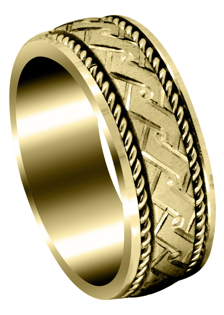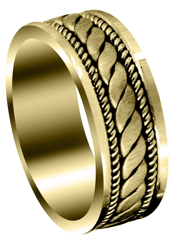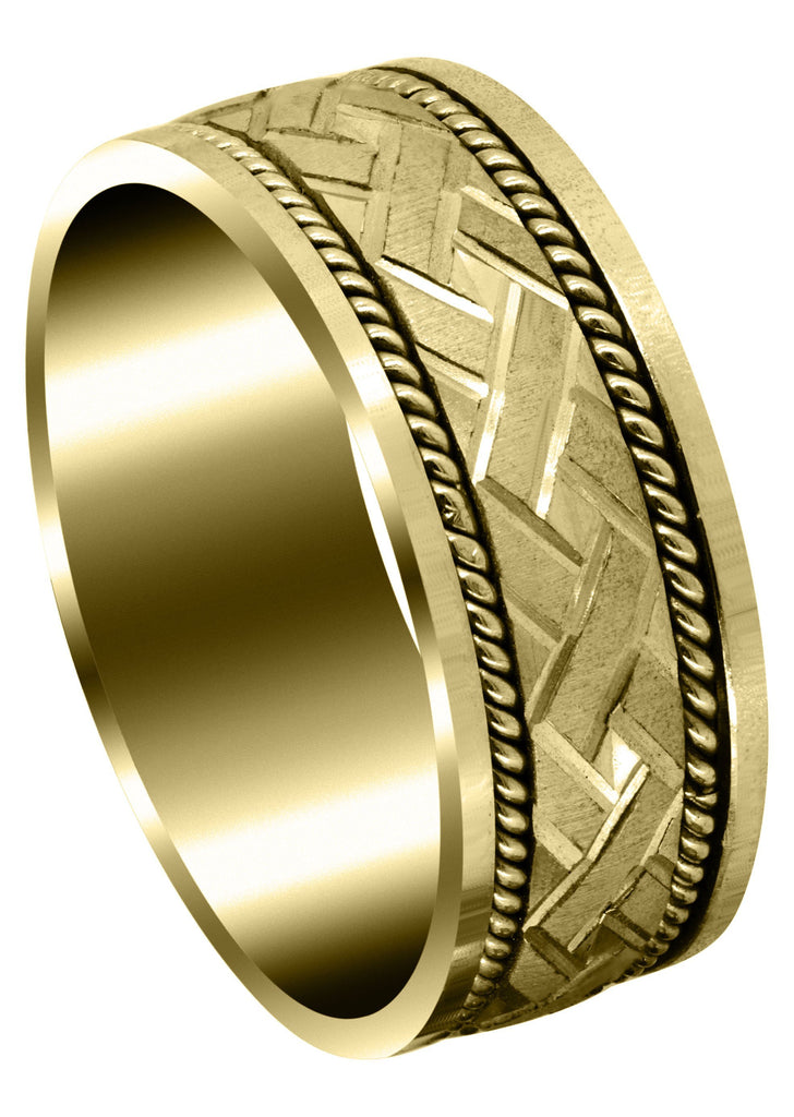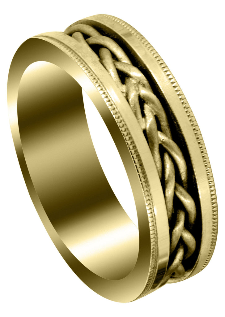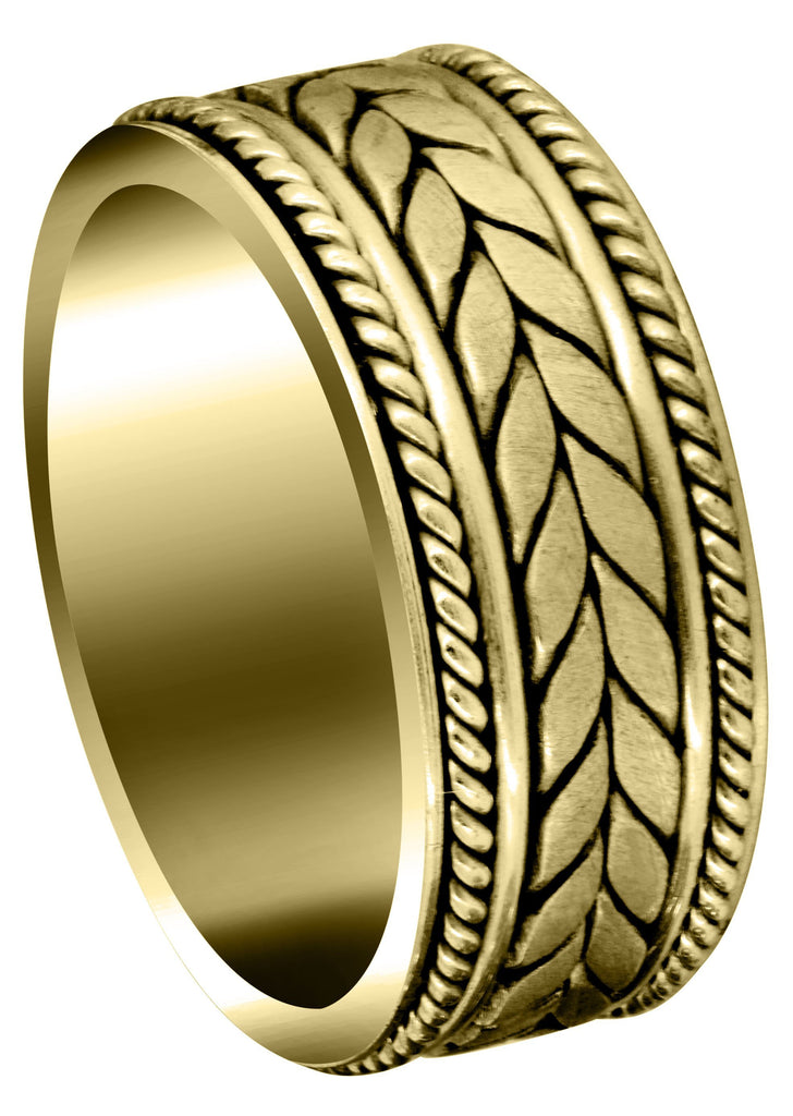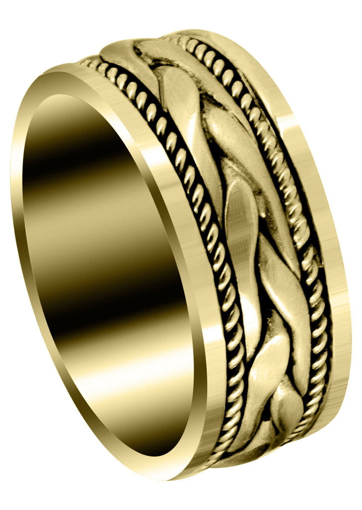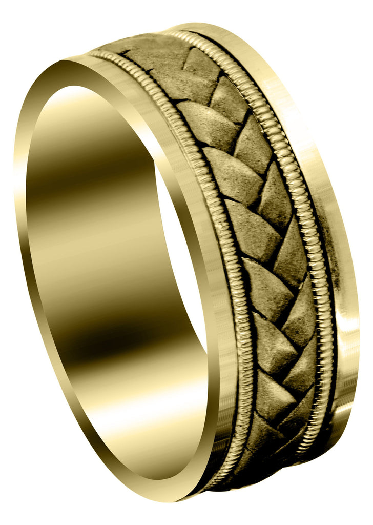 Yellow Gold Hand Woven Unique Mens Wedding Band | High Polish Finish (King)