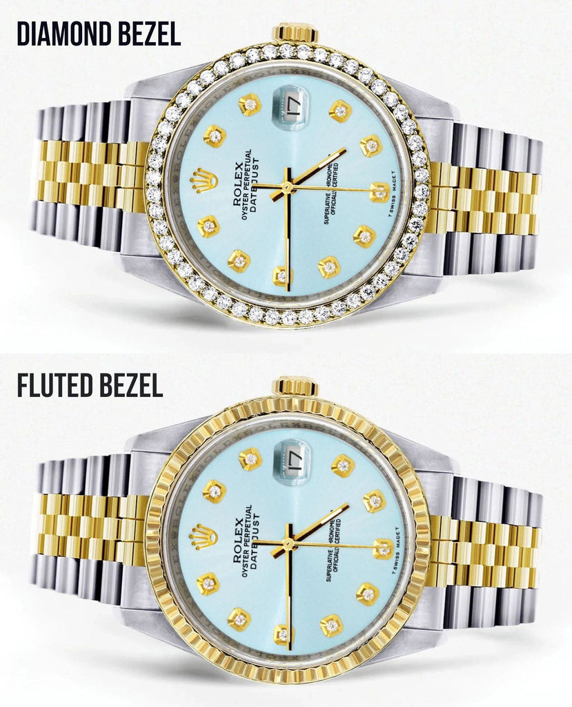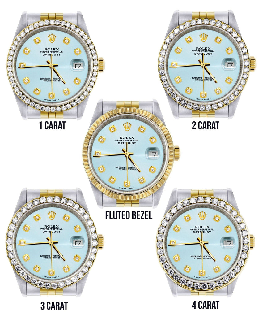 Rolex Datejust 36MM with a Jubilee Band. Customizable Diamond Bezel From 1.00-4.00 Carat. Below are more details of the watch.