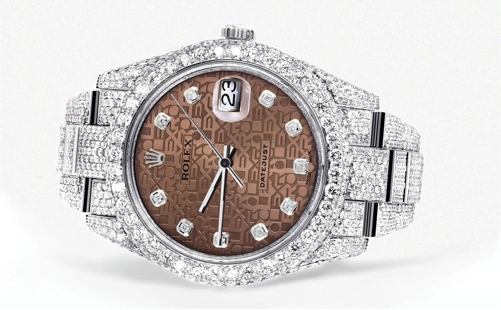 Diamond Iced Out Rolex Datejust 41 | 25 Carats Of Diamonds | Custom Chocolate Jubilee Diamond Dial | Two Row | Oyster Band