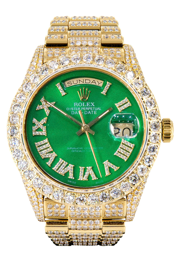 - Dial: Custom Diamond Roman Numeral Green Dial