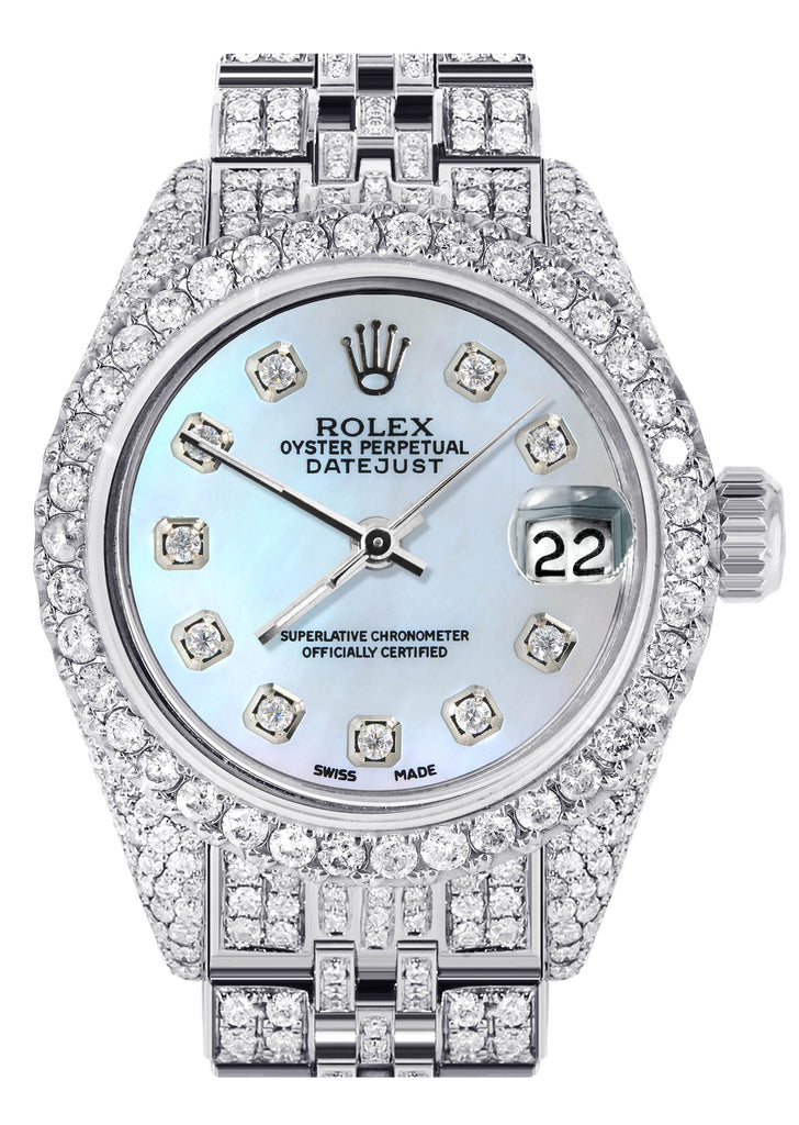Womens Diamond Rolex Watch | 1 Carat Bezel | 26Mm | Light Blue Diamond Dial | Jubilee Band