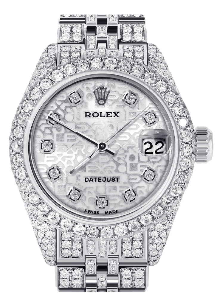Womens Diamond Rolex Watch | 1 Carat Bezel | 26Mm | Texture Diamond Dial | Jubilee Band