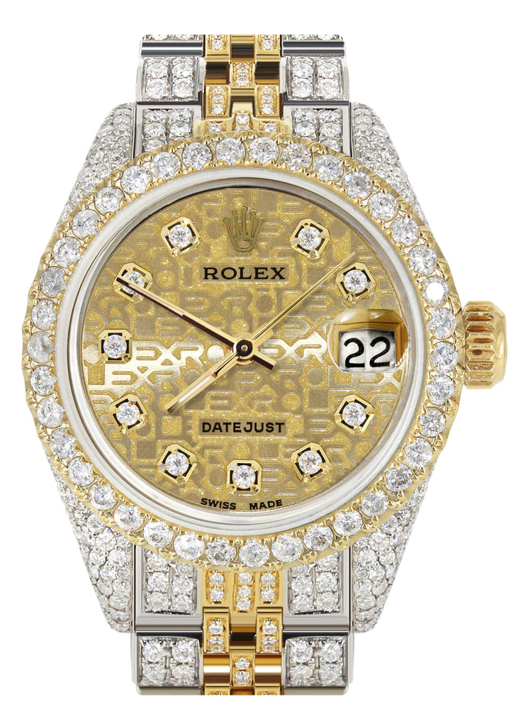 Womens Diamond Gold Rolex Watch | 1 Carat Bezel | 26Mm | Texture Gold Diamond Dial | Jubilee Band