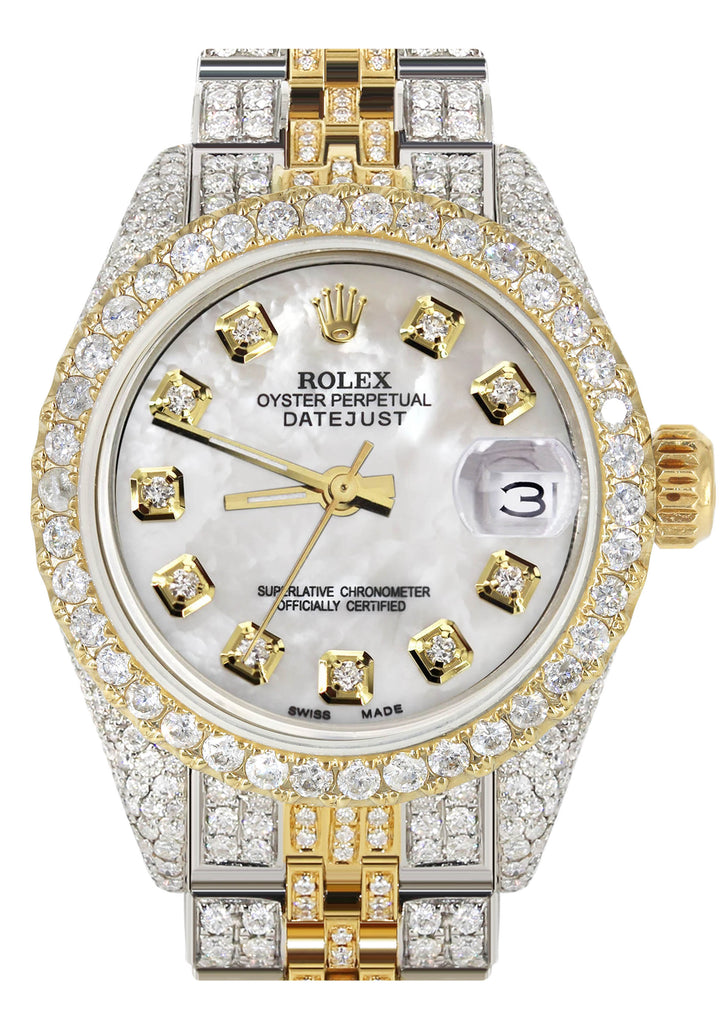Womens Diamond Gold Rolex Watch | 1 Carat Bezel | 26Mm | White Dial | Jubilee Band
