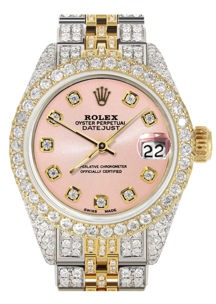 Womens Diamond Gold Rolex Watch | 1 Carat Bezel | 26Mm | Pink Dial | Jubilee Band