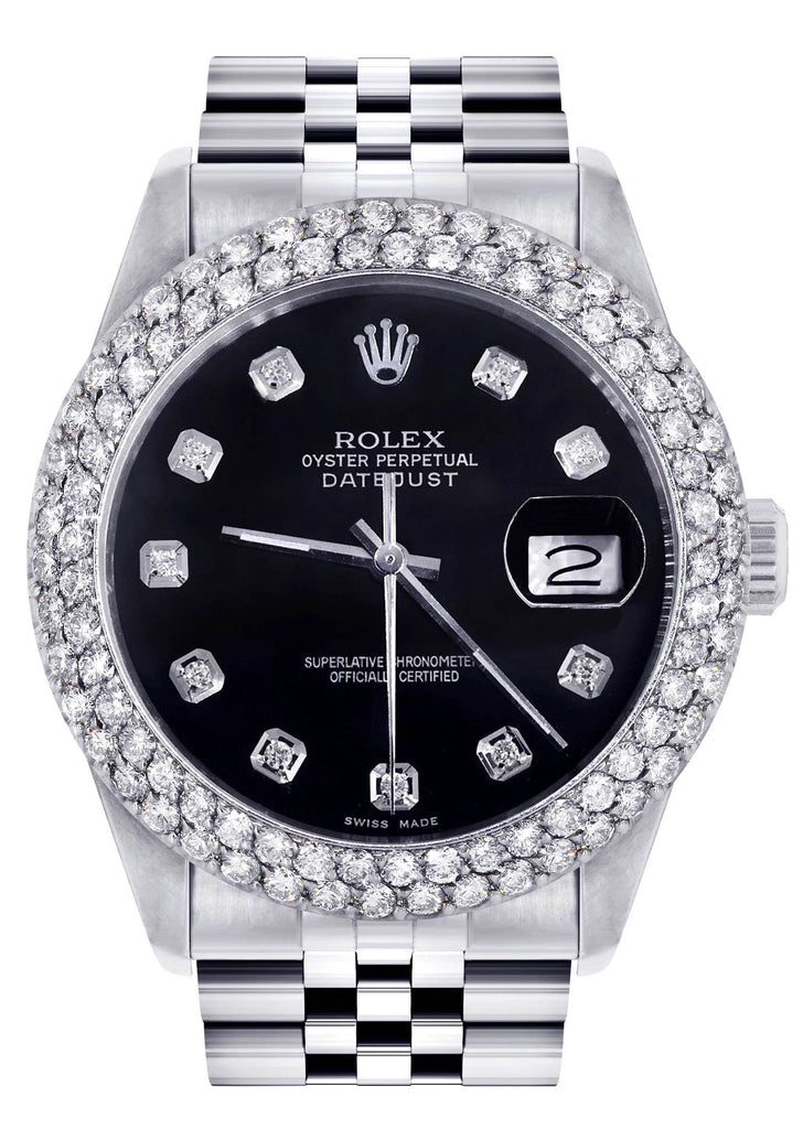 Mens Rolex Datejust Watch 16200 | 36Mm | Black Dial | Two Row 4.25 Carat Bezel | Jubilee Band