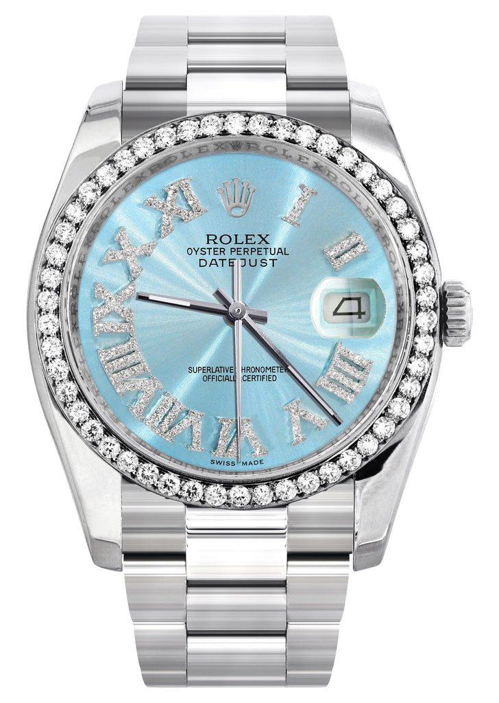 116233 | Diamond Gold Rolex Watch For Men | 36Mm | Light Blue Dial | Oyster Band