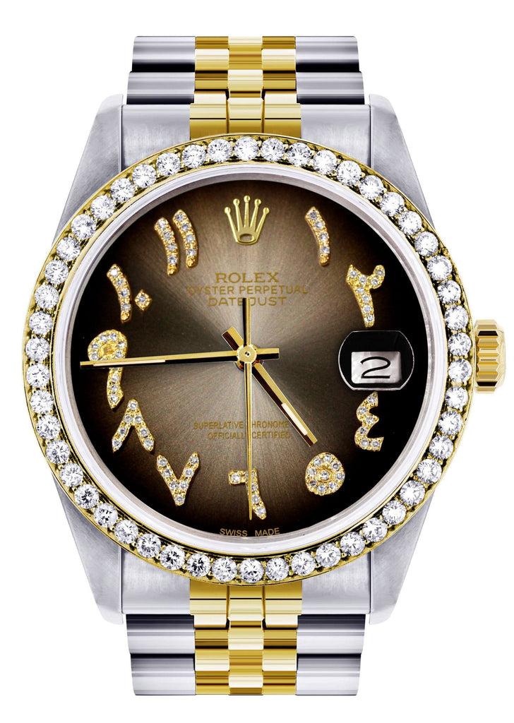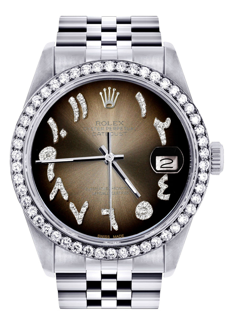 Diamond Mens Rolex Datejust Watch 16200 | 36Mm | Brown Arabic Diamond Dial | Oyster Band