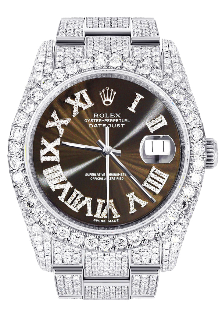 Iced Out Rolex Datejust 36 MM | Stainless Steel | 10 Carats of Diamonds | Brown Roman Diamond Dial | Jubilee Band