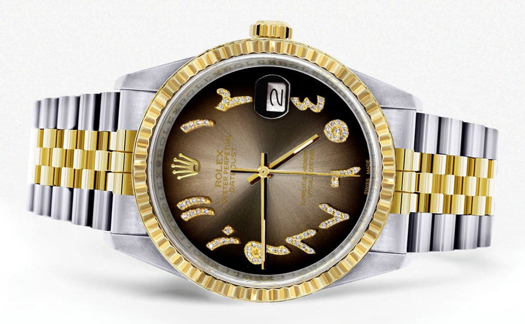 Mens Rolex Datejust Watch 16233 Two Tone | 36Mm | Brown Arabic Dial | Jubilee Band