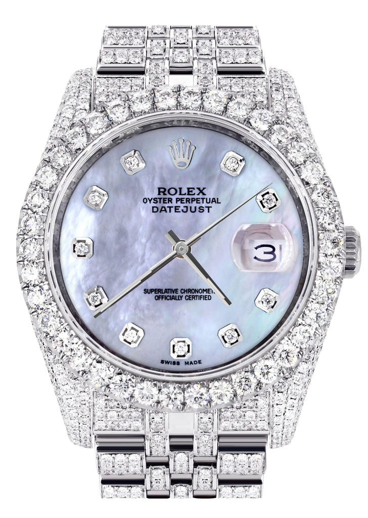 Iced Out Rolex Datejust 36 MM | Two Tone | 10 Carats of Diamonds | Mother of Pearl Diamond Dial