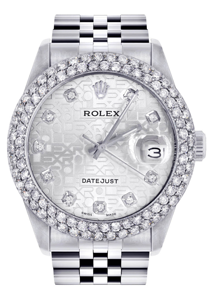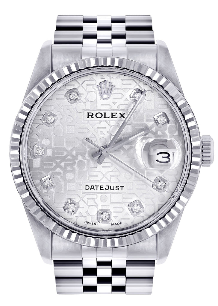 Mens Rolex Datejust Watch 16200 | 36Mm | White Texture Dial | Two Row 4.25 Carat Bezel | Jubilee Band