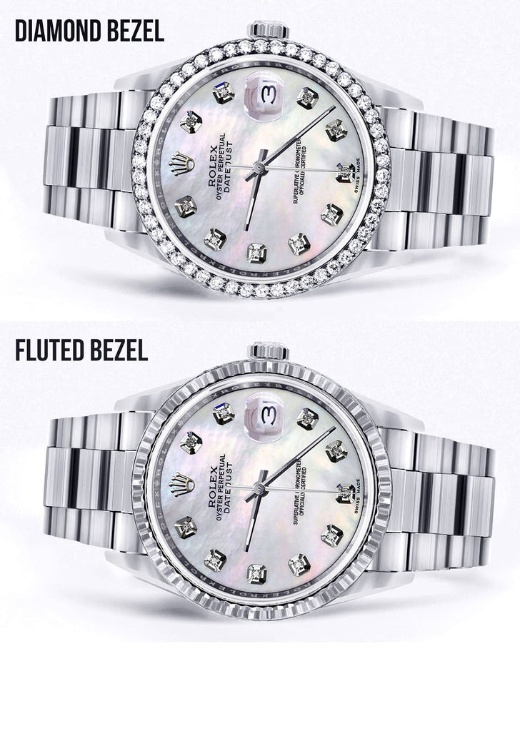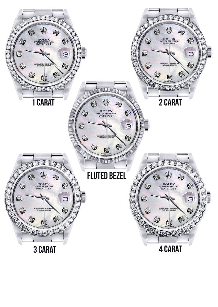 Rolex Datejust 36MM with a Oyster Band. Customizable Diamond Bezel From 1.00-4.00 Carat. Below are more details of the watch.
