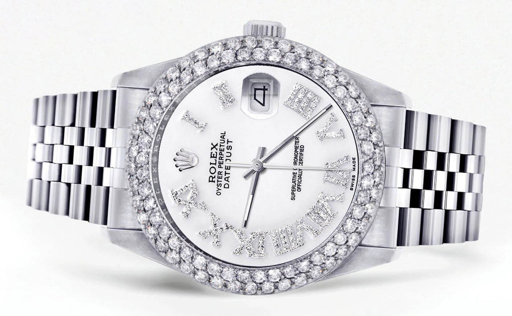 Mens Rolex Datejust Watch 16200 | 36Mm | White Roman Numeral Dial | Two Row 4.25 Carat Bezel | Jubilee Band