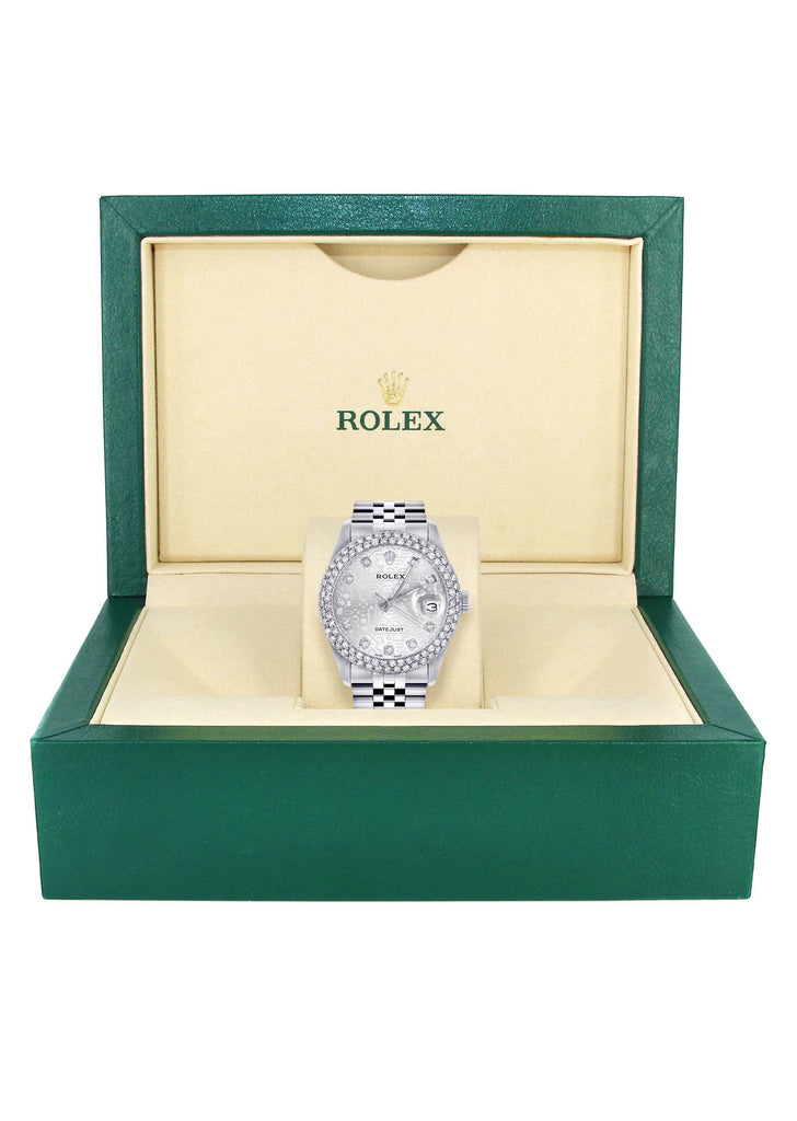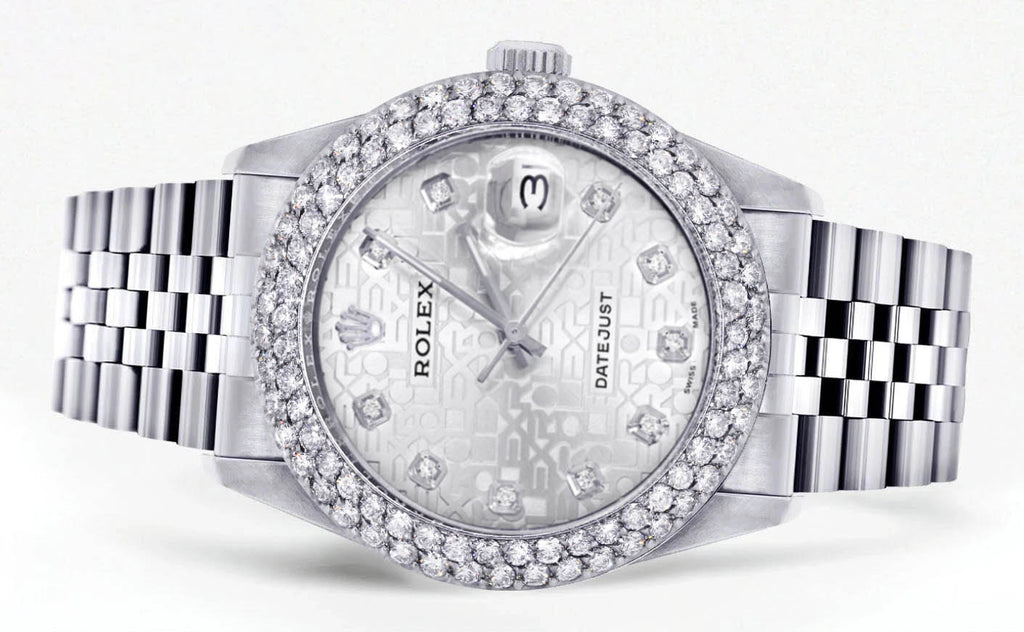 Mens Rolex Datejust Watch 16200 | 36Mm | White Texture Dial | Two Row 4.25 Carat Bezel | Jubilee Band