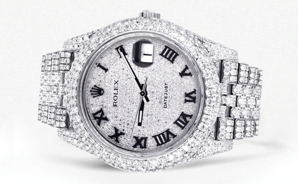 Diamond Iced Out Rolex Datejust 41 | 25 Carats Of Diamonds | Custom Roman Numeral Diamond Dial | Two Row | Jubilee Band