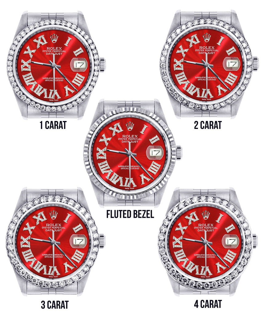 Rolex Datejust 36MM with a Jubilee Band. You can customize the bezel type between Gold Fluted Bezel or Diamond Bezel ranging from 1.00-4.00 carat. Below are more details of the watch