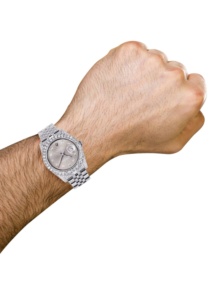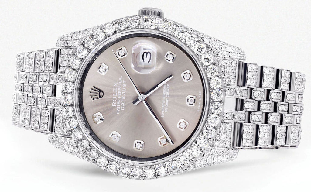 Iced Out Rolex Datejust 36 MM | Stainless Steel | 16.5 Carats of Diamonds | Grey Diamond Dial | Jubilee Band | Model 116200