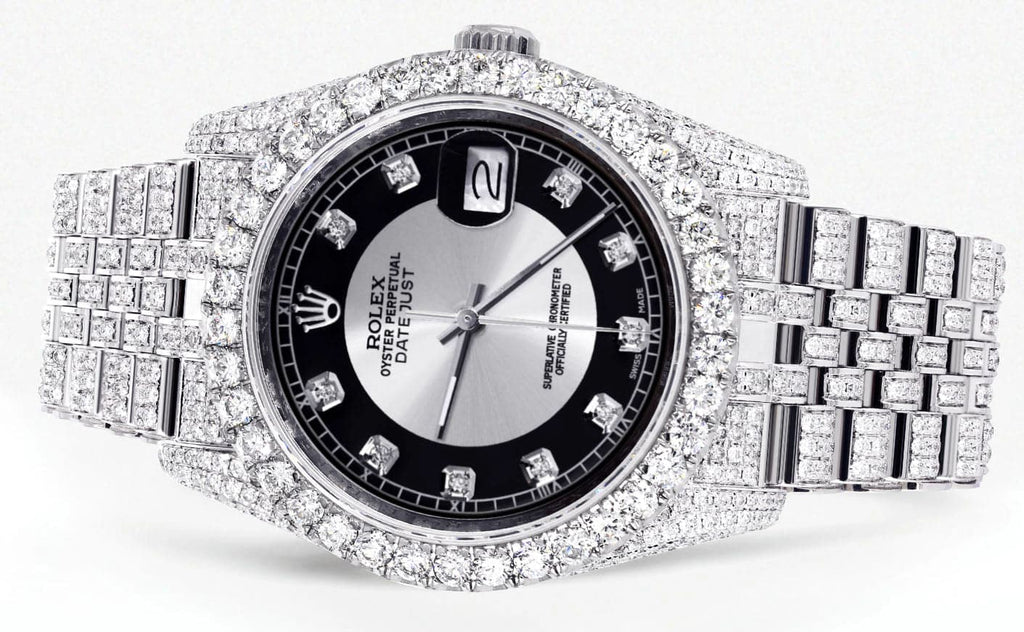 Iced Out Rolex Datejust 36 MM | Stainless Steel | 16.5 Carats of Diamonds | Tuxedo Diamond Dial | Jubilee Band | Model 116200