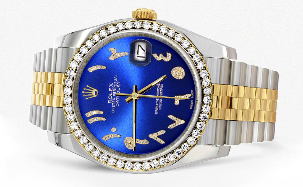116233 | Hidden Clasp | Gold & Steel Rolex Datejust Watch | 36Mm | Royal Blue Arabic Diamond Dial | Jubilee Band