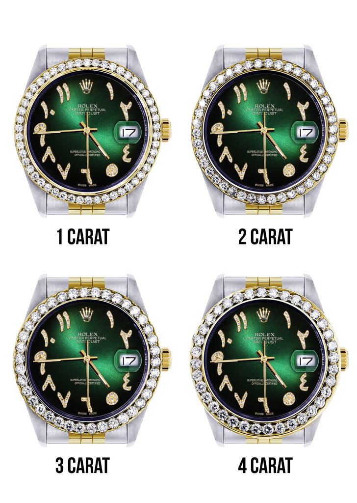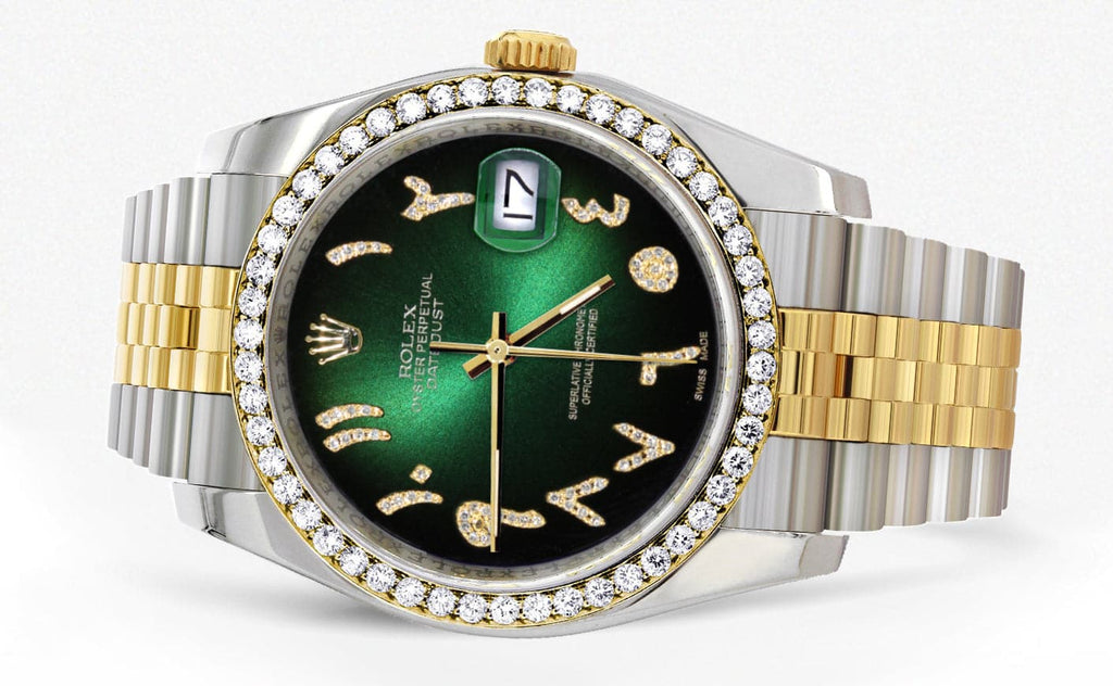 116233 | Hidden Clasp | Gold & Steel Rolex Datejust Watch | 36Mm | Green Black Arabic Diamond Dial | Jubilee Band