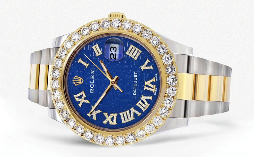 Rolex Datejust II Watch | 41 MM | 18K Yellow Gold & Stainless Steel | Custom Blue Text Pattern Roman Dial | Oyster Band