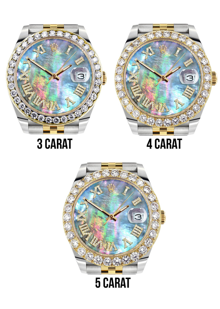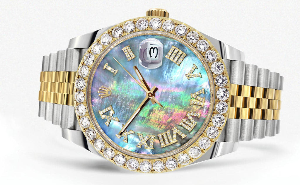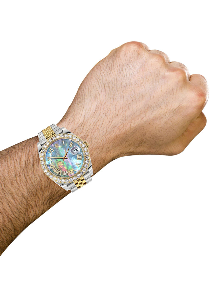 Rolex Datejust 41 Watch | 41 MM | 18K Yellow Gold & Stainless Steel | Custom Dark Mother of Pearl Roman Dial | Jubilee Band
