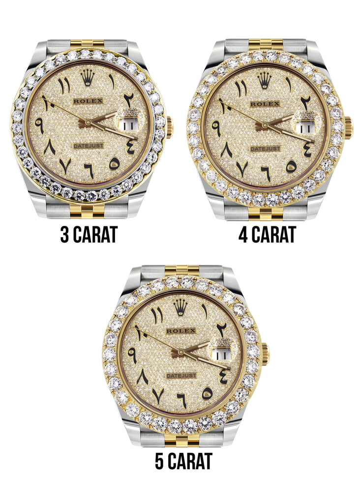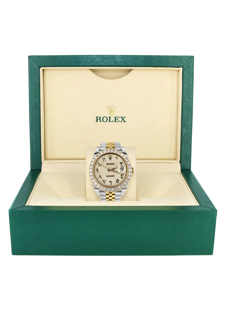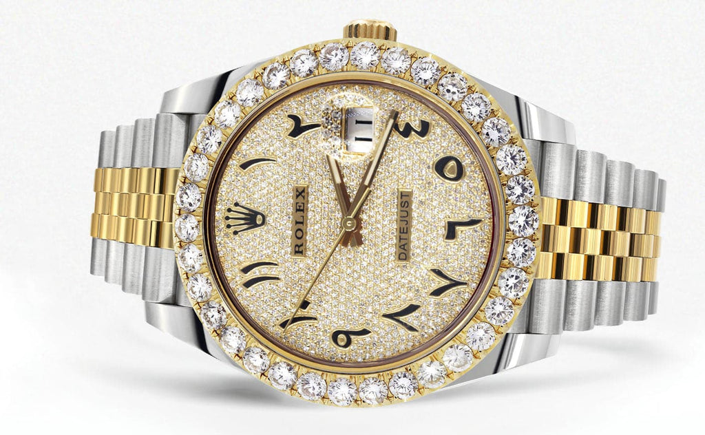 Rolex Datejust 41 Watch | 41 MM | 18K Yellow Gold & Stainless Steel | Custom Iced Out Arabic Diamond Dial | Jubilee Band