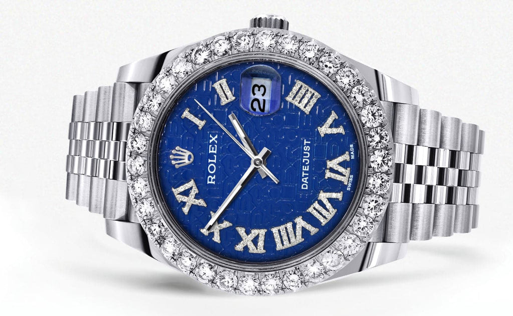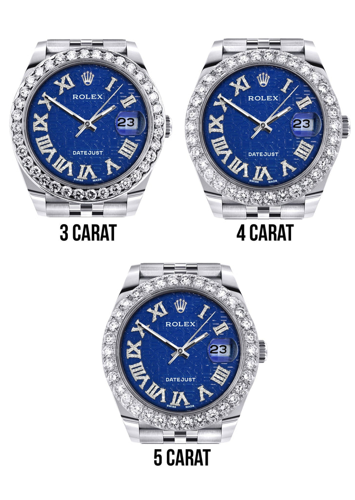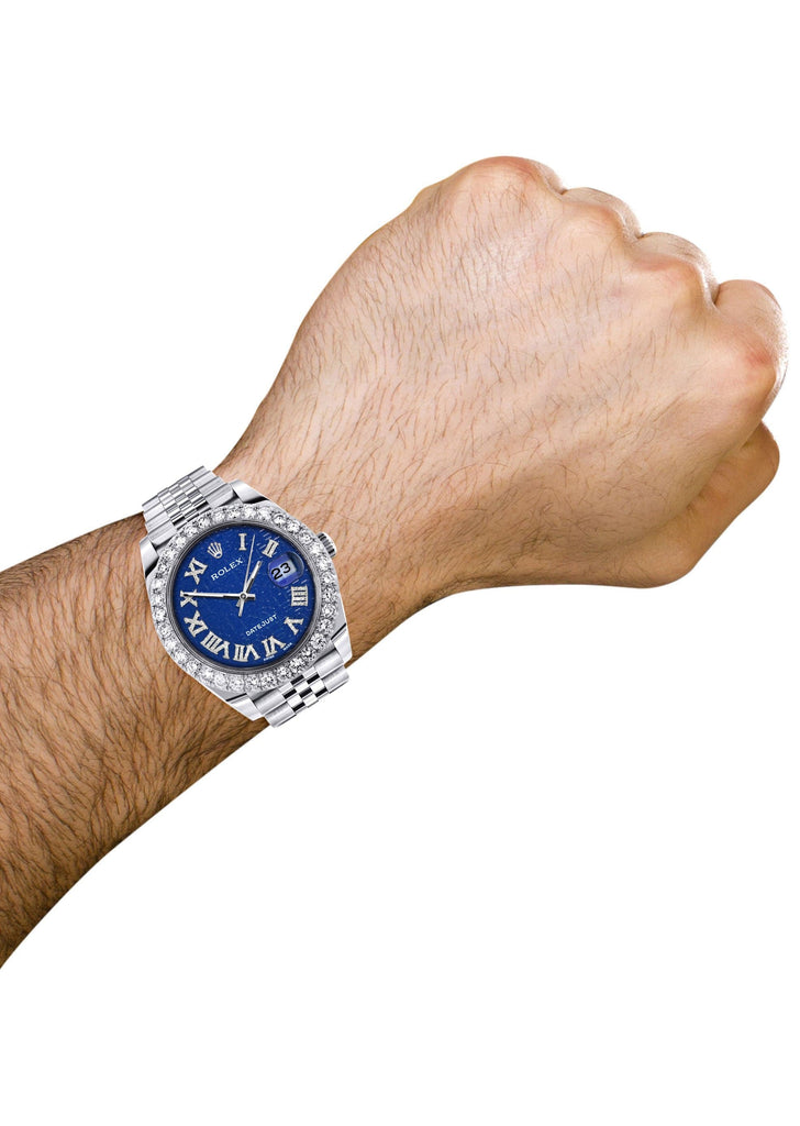 Rolex Datejust 41 Watch | 41 MM | Custom Blue Texture Roman Diamond Dial | Jubilee Band