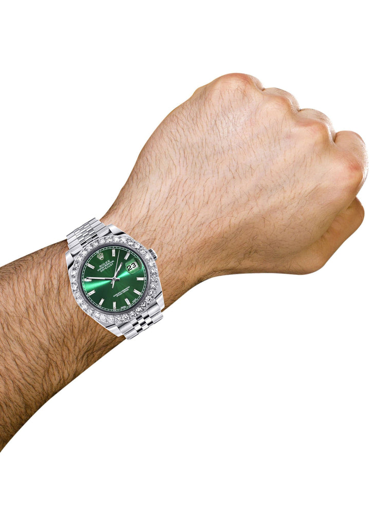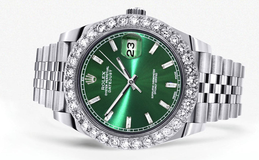 -Custom Green Baguette Diamond Dial