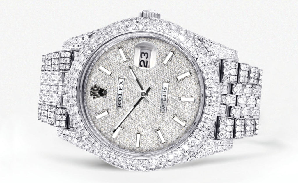 Womens Diamond Iced Out Rolex Datejust 41 | 25 Carats Of Diamonds | Custom Diamond Dial | Two Row | Jubilee Band