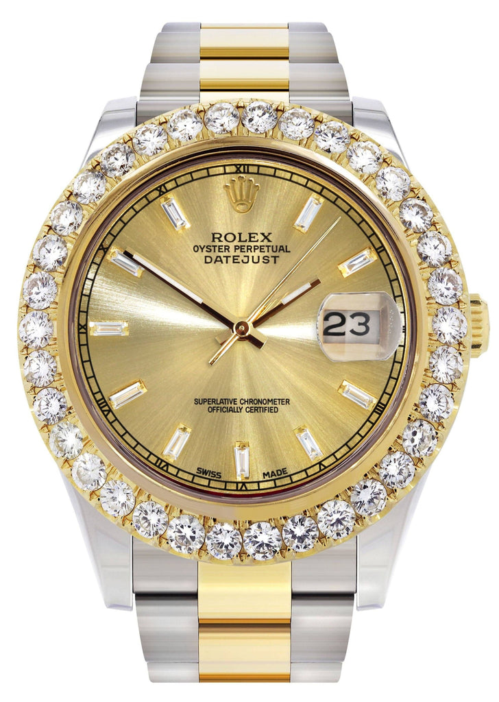 Diamond Iced Out Rolex Datejust 41 | 25 Carats Of Diamonds | Gold Diamond Dial | Two Tone | Two Row | Oyster Band