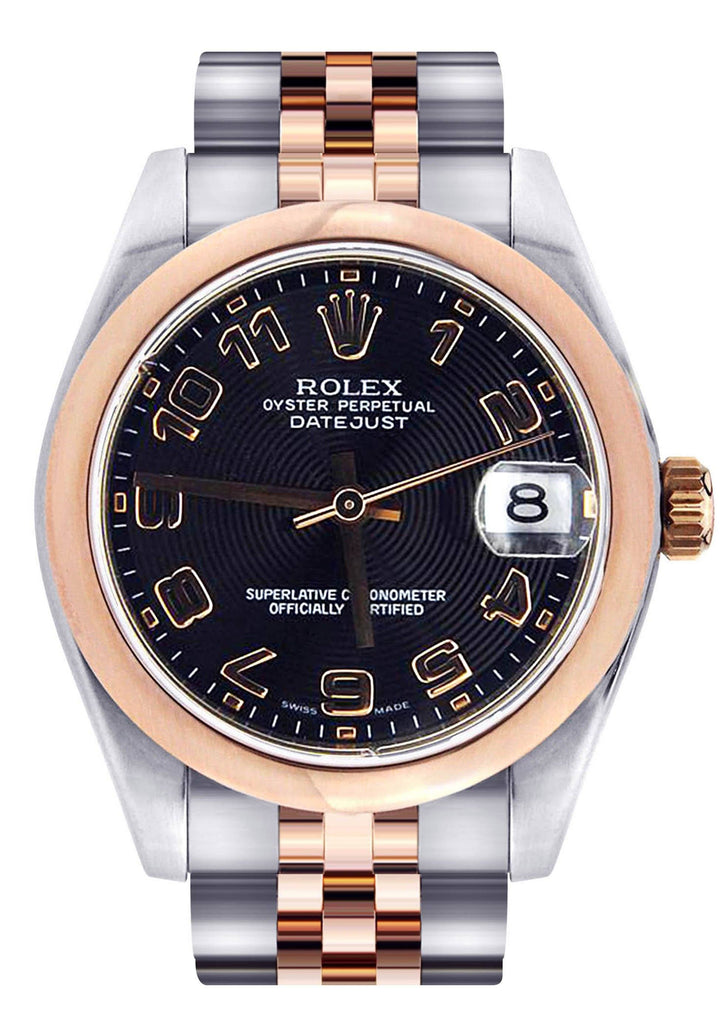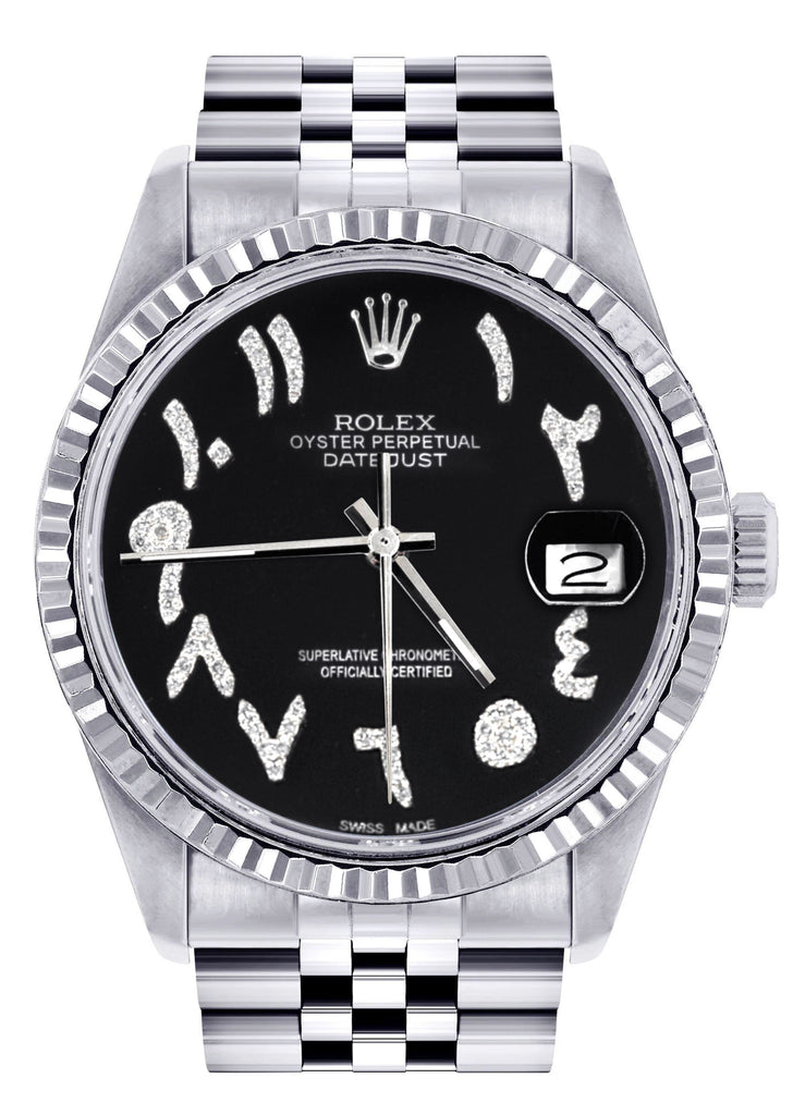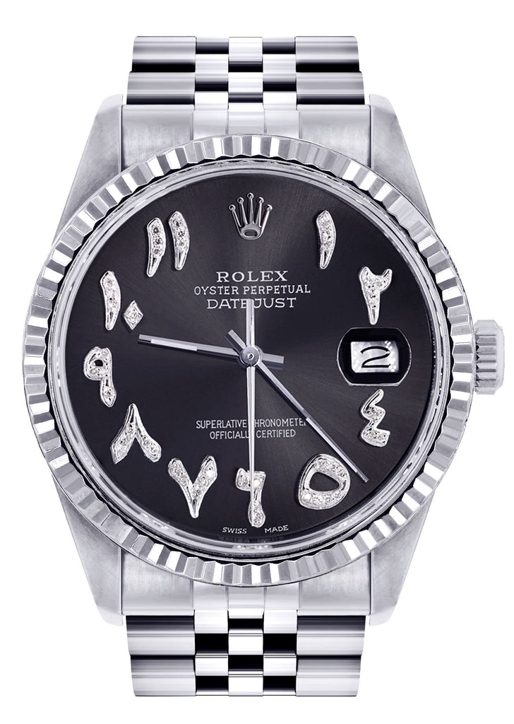 Womens Rolex Datejust Watch 16200 | Fluted Bezel | 36Mm | Black Arabic Dial | Fluted Bezel | Jubilee Band