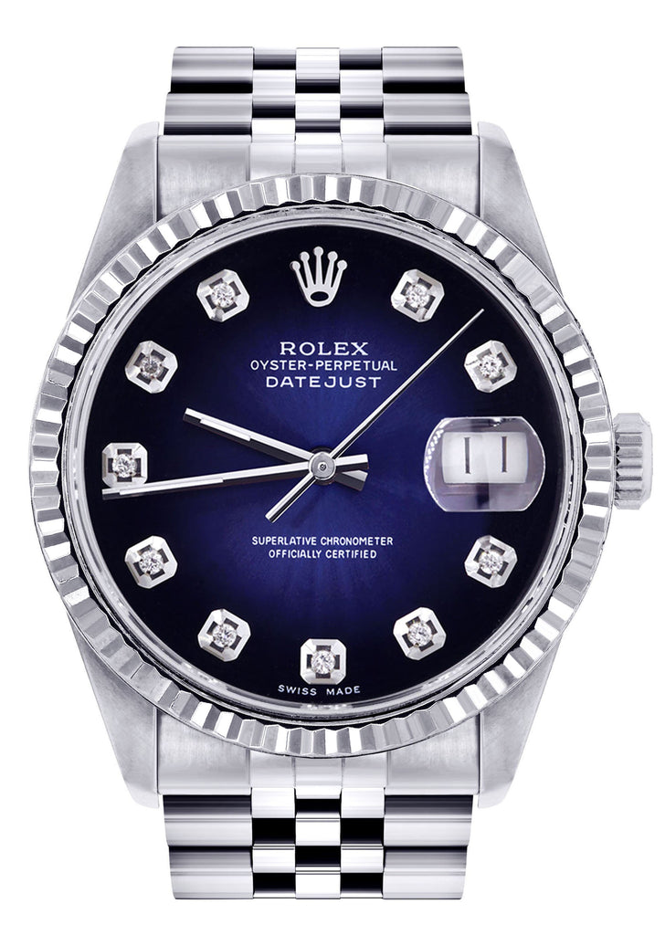 Womens Rolex Datejust Watch 16200 | Fluted Bezel | 36Mm | Blue Arabic Dial | Fluted Bezel | Jubilee Band