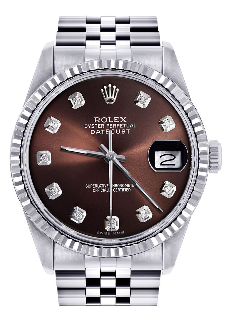 Womens Rolex Datejust Watch 16200 | Fluted Bezel | 36Mm | Brown Arabic Dial | Fluted Bezel | Jubilee Band