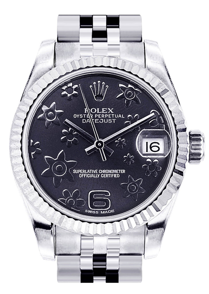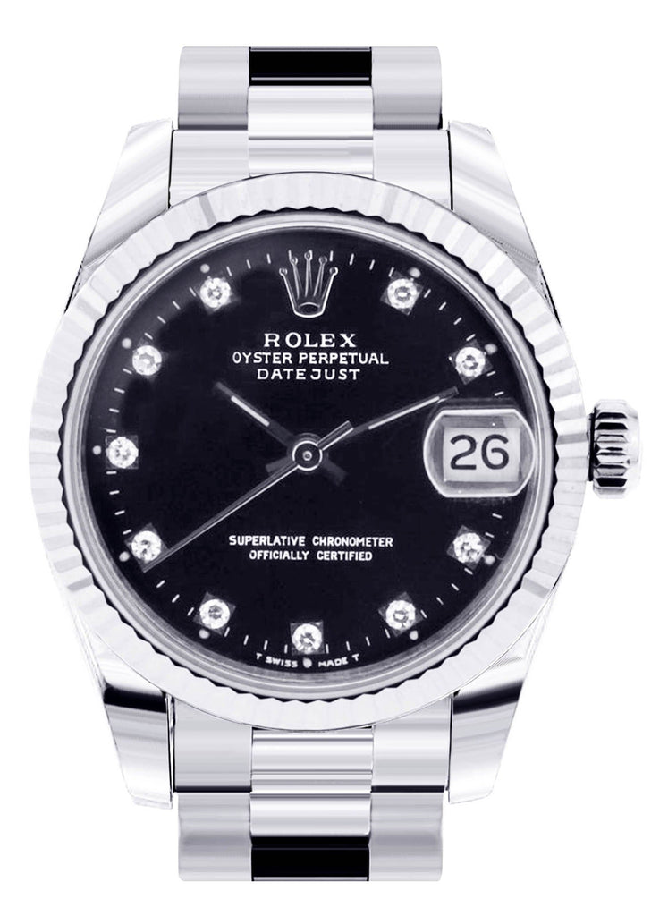Rolex Datejust Watch For Women | Stainless Steel | Presidential Band | Custom Black Diamond Dial | 31 Mm