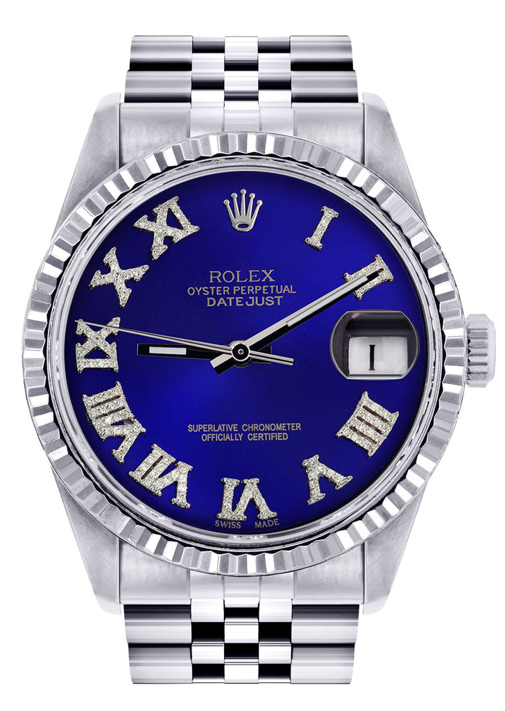 Womens Rolex Datejust Watch 16200 | Fluted Bezel | 36Mm | Blue Roman Numeral Dial | Fluted Bezel | Jubilee Band
