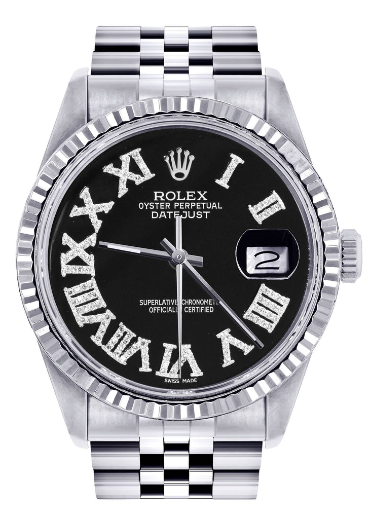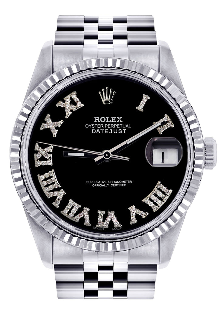 Womens Rolex Datejust Watch 16200 | Fluted Bezel | 36Mm | Black Roman Numeral Dial | Fluted Bezel | Jubilee Band