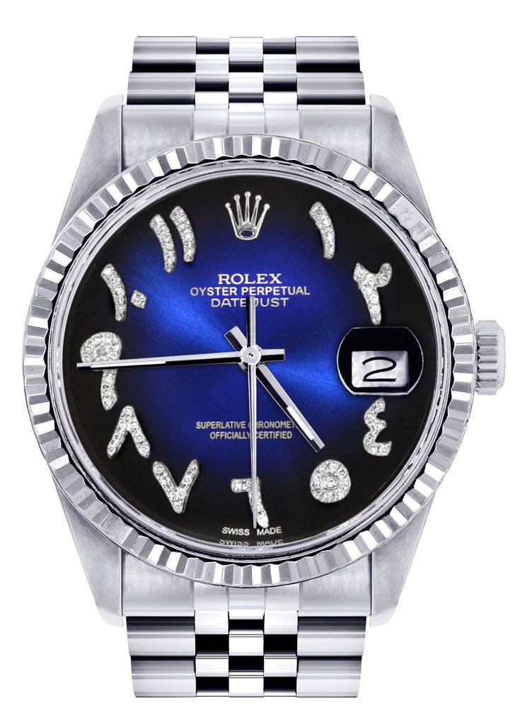 Womens Rolex Datejust Watch 16200 | Fluted Bezel | 36Mm | Blue Black Arabic Dial | Fluted Bezel | Jubilee Band