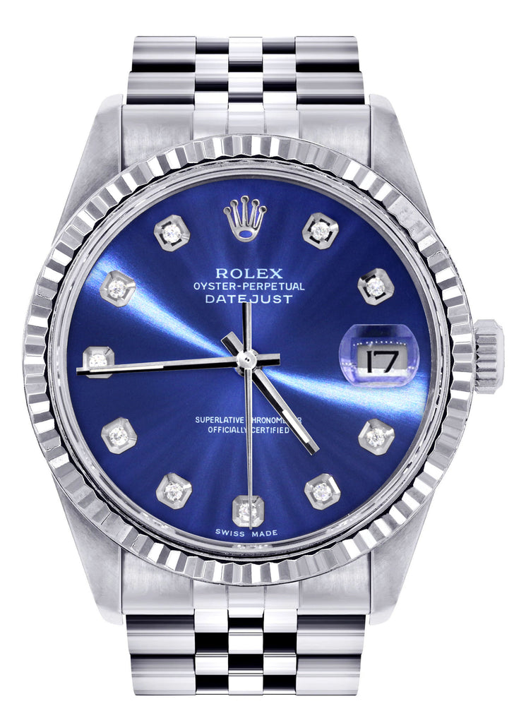 Womens Rolex Datejust Watch 16200 | Fluted Bezel | 36Mm | Blue Dial | Fluted Bezel | Jubilee Band