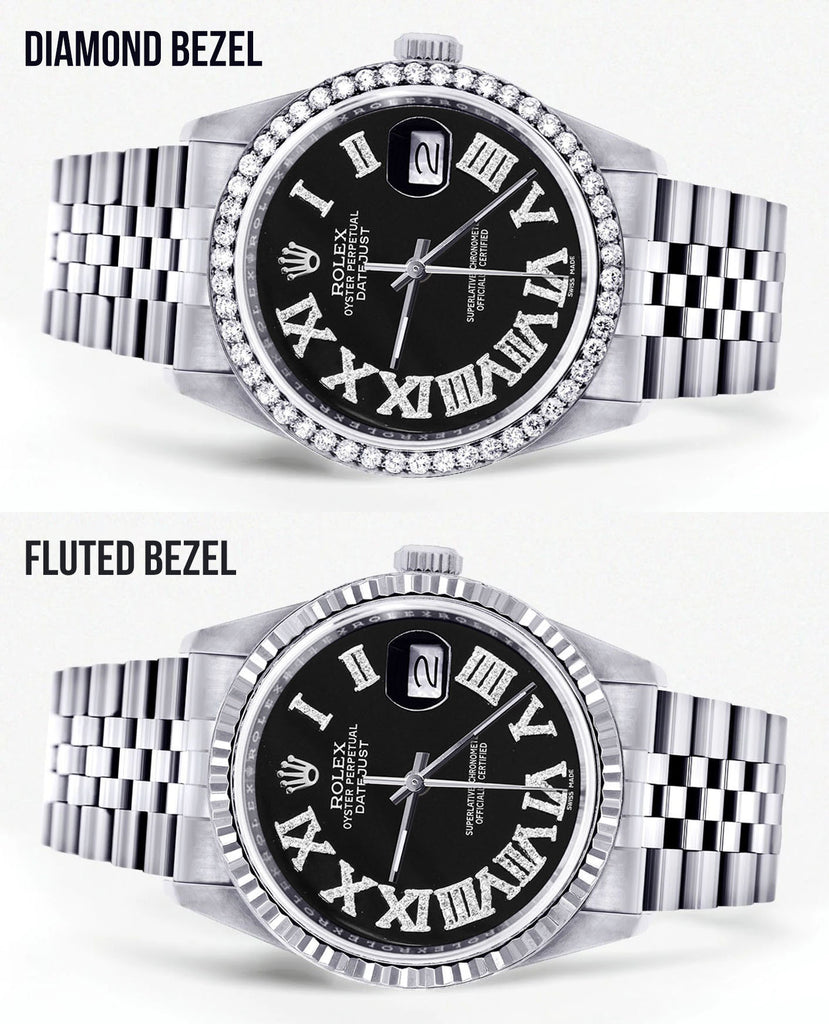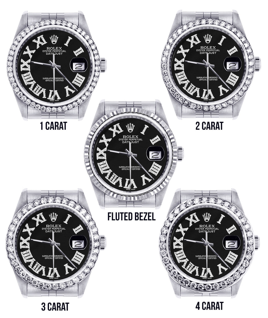 Rolex Datejust 36MM with a Jubilee Band. You can customize the bezel type between Gold Fluted Bezel or Diamond Bezel ranging from 1.00-4.00 carat. Below are more details of the watch.