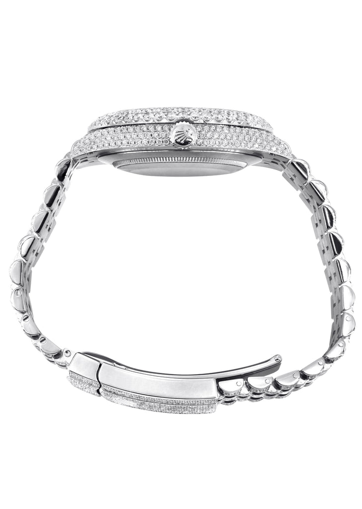 Womens Diamond Iced Out Rolex Datejust 41 | 25 Carats Of Diamonds | Custom Grey Roman Numeral Diamond Dial | Two Row | Jubilee Band