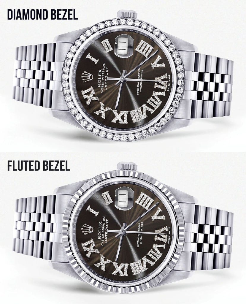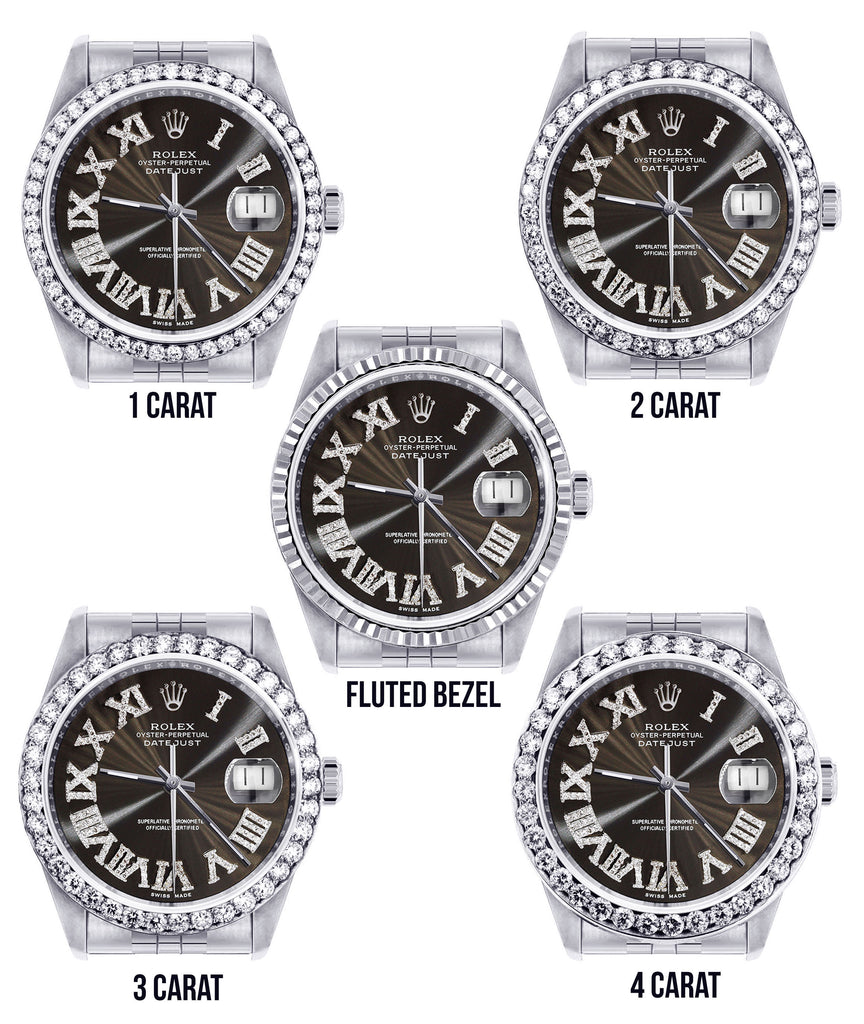 Rolex Datejust 36MM with a Jubilee Band. You can customize the bezel type between Gold Fluted Bezel or Diamond Bezel ranging from 1.00-4.00 carat. Below are more details of the watch.
