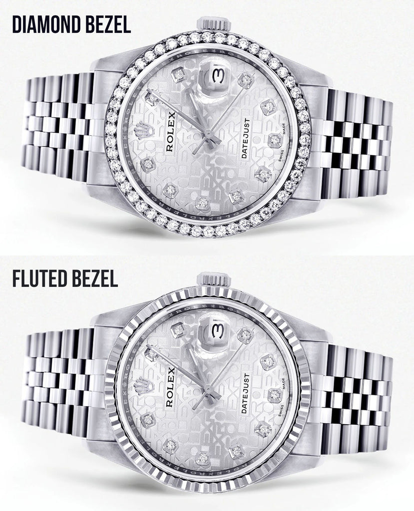 Rolex Datejust 36MM with a Jubilee Band. You can customize the bezel type between Gold Fluted Bezel or Diamond Bezel ranging from 1.00-4.00 carat. Below are more details of the watch.