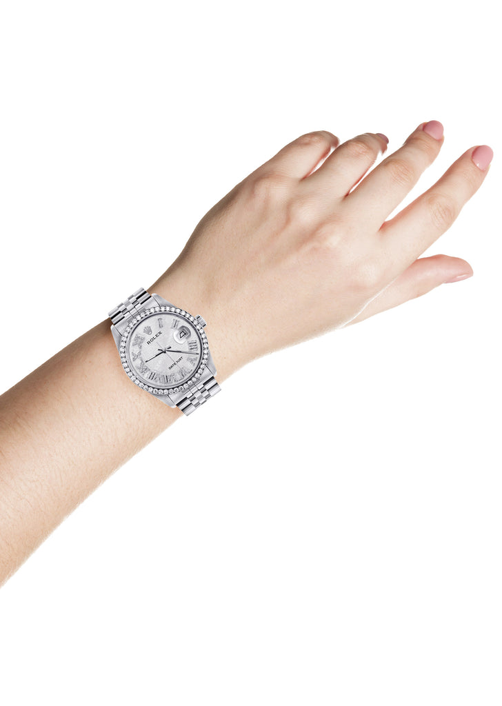 -Custom Diamond Rolex Textured Roman Numeral Dial