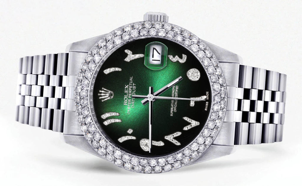 Womens Rolex Datejust Watch 16200 | 36Mm | Green Black Arabic Diamond Dial | Two Row 4.25 Carat Bezel | Jubilee Band