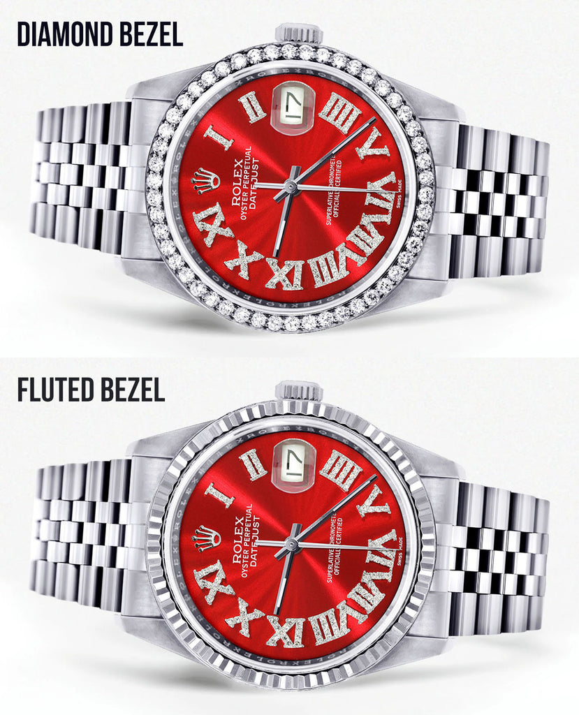 Rolex Datejust 36MM with a Jubilee Band. You can customize the bezel type between Gold Fluted Bezel or Diamond Bezel ranging from 1.00-4.00 carat. Below are more details of the watch