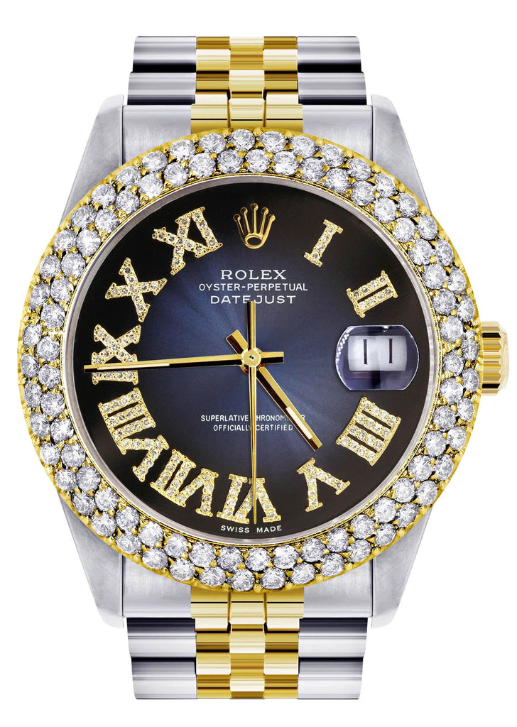 Diamond Gold Rolex Watch For Women 16233 | 36Mm | Blue Black Roman Numeral Dial | Two Row 4.25 Carat Bezel | Jubilee Band