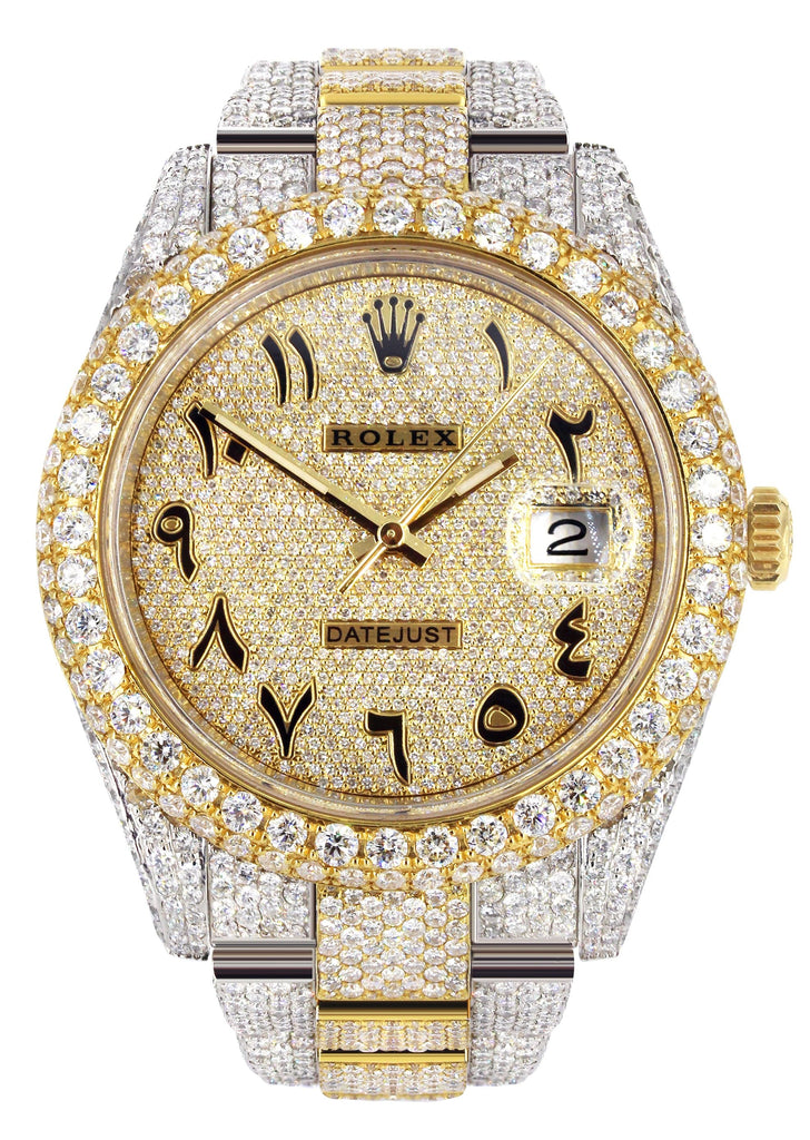 Diamond Iced Out Rolex Datejust 41 | 25 Carats Of Diamonds | Custom Full Diamond Arabic Dial | Oyster Band