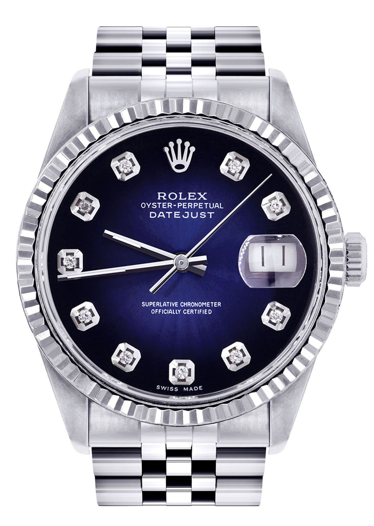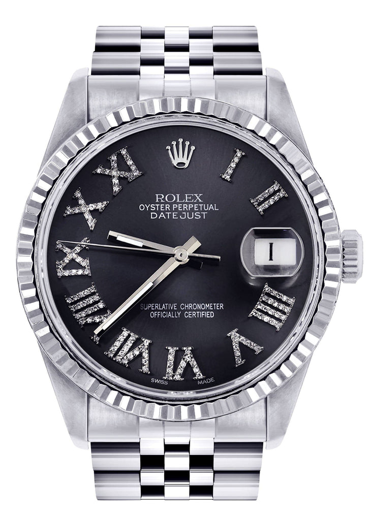 Mens Rolex Datejust Watch 16200 | Fluted Bezel | 36Mm | Diamond Roman Numeral Dial | Jubilee Band